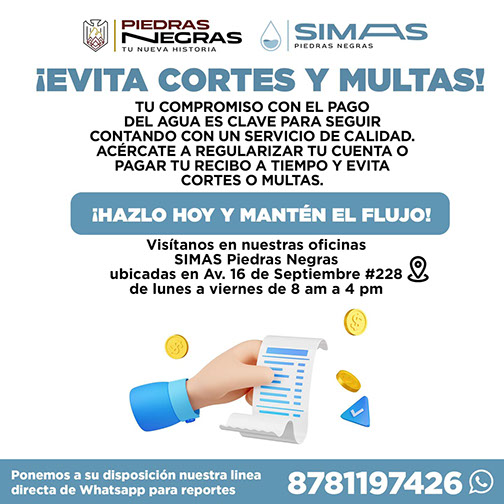 AVE. 16 DE SEPTIEMBRE NO. 228, COLONIA LAS FUENTES. CP. 26060, PIEDRAS NEGRAS, COAHUILA, MÉXICO